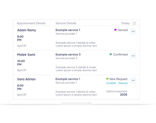 رتب جدول المواعيد بناءً على مواعيد الخدمات المتاحة، واجعل حجز كل عميلة محدد بوقت وتاريخ وإلى جانبه العامل، واستفد من خاصية الحجز أونلاين، وأتيح لزبائنك اختيار ميعاد الحجز والدفع من خلال طرق الدفع الإلكترونية المتاحة. واستخدم التنبيهات لإرسال رسائل تذكيرية بمواعيد الحجز قبل الموعد.